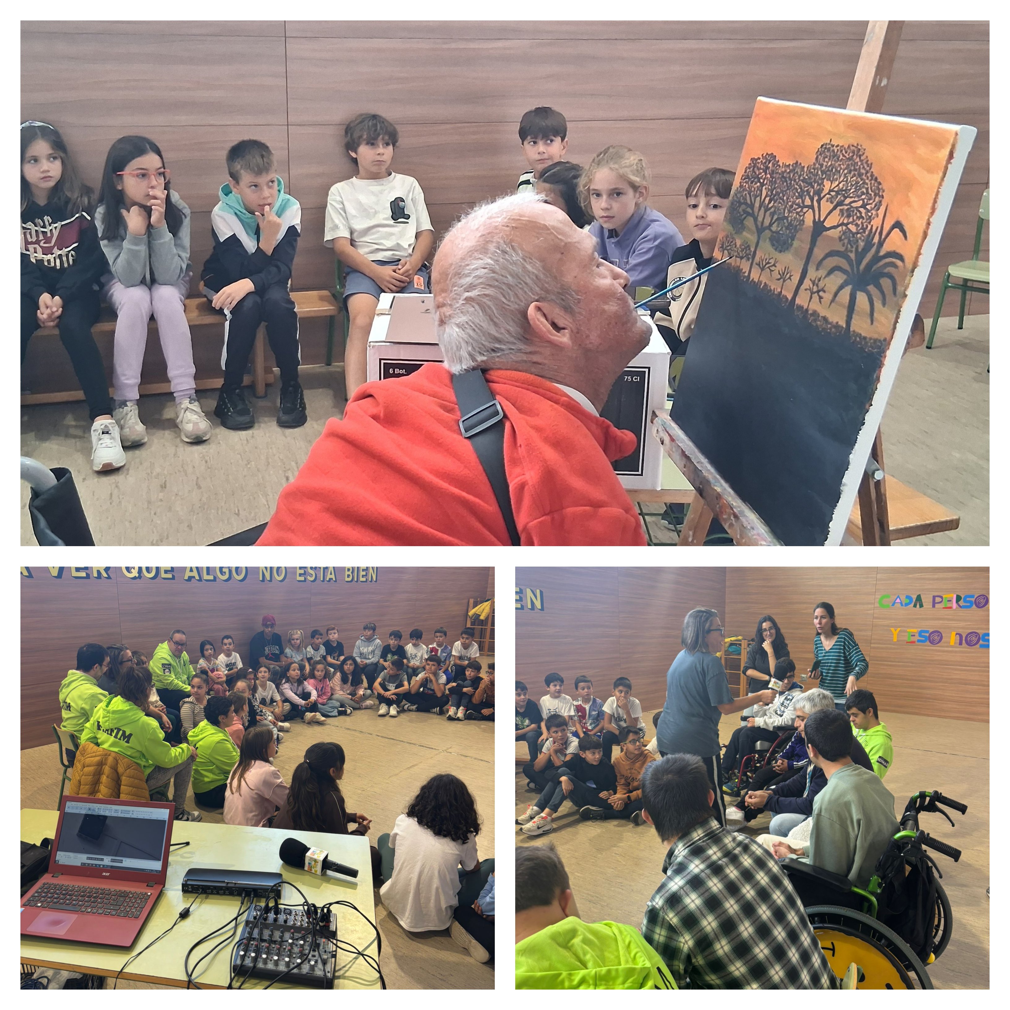 También hubo teatro, percusión y talleres de costura creativa con AVIVA Salamanca; encuadernación y teatro inclusivo con Insolamis; y una impresionante demostración de pintura con la boca a cargo del artista Francisco Javier Marcos, que cautivó al alumnado con su ejemplo de esfuerzo y talento.