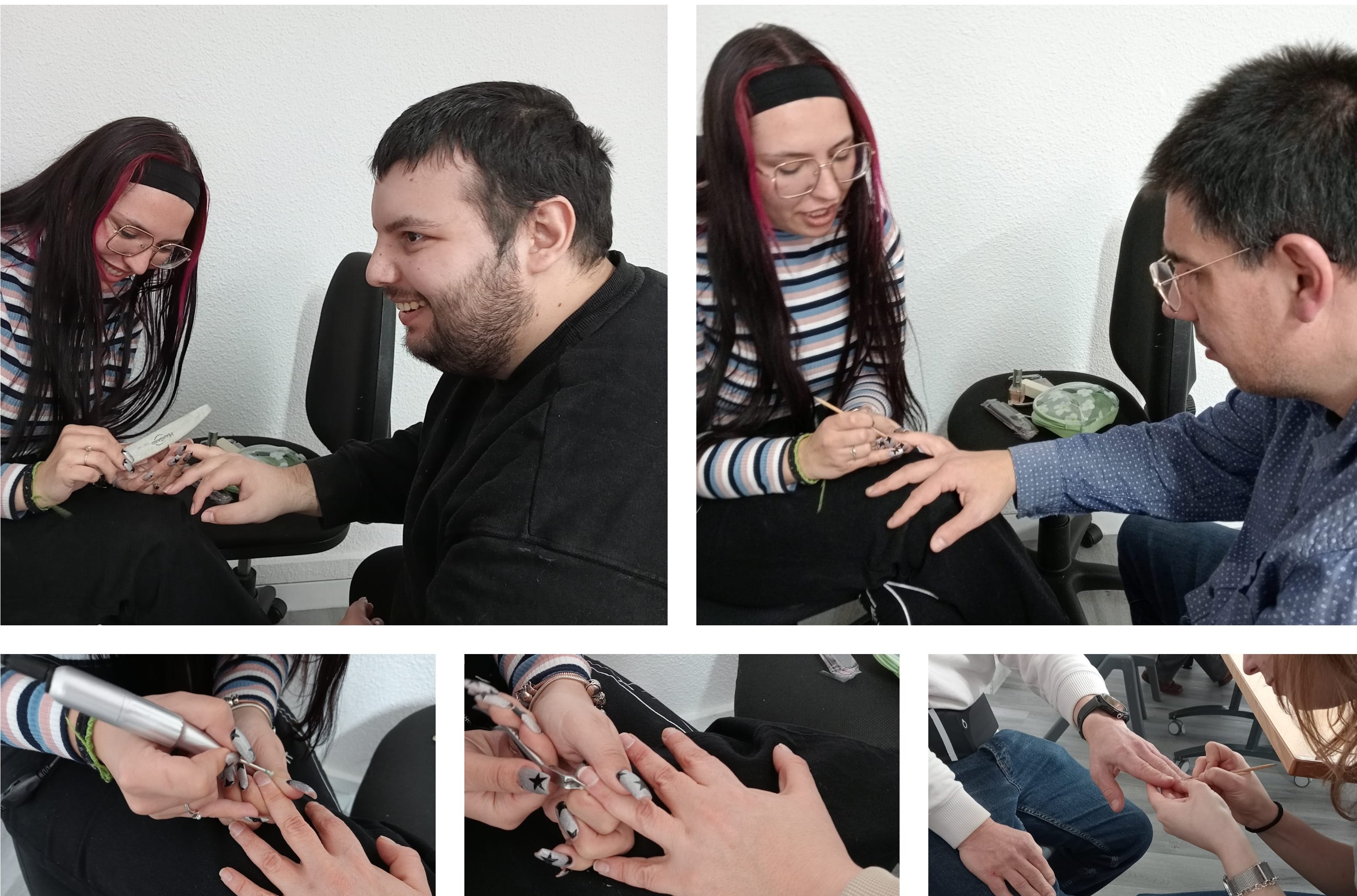 Dentro del taller de salud y autocuidado, y gracias a la implicación de Lidia, alumna en prácticas, se desarrolló una actividad profesionalizada de cuidado de manos. La manicura, realizada con todas las herramientas adecuadas, permitió trabajar la higiene, el cuidado de la piel y la atención estética como parte del bienestar personal. Más allá del aspecto visual, esta práctica contribuye a prevenir infecciones, detectar posibles alteraciones y reforzar hábitos saludables, además de potenciar la autoestima, la autonomía y la confianza de los participantes.