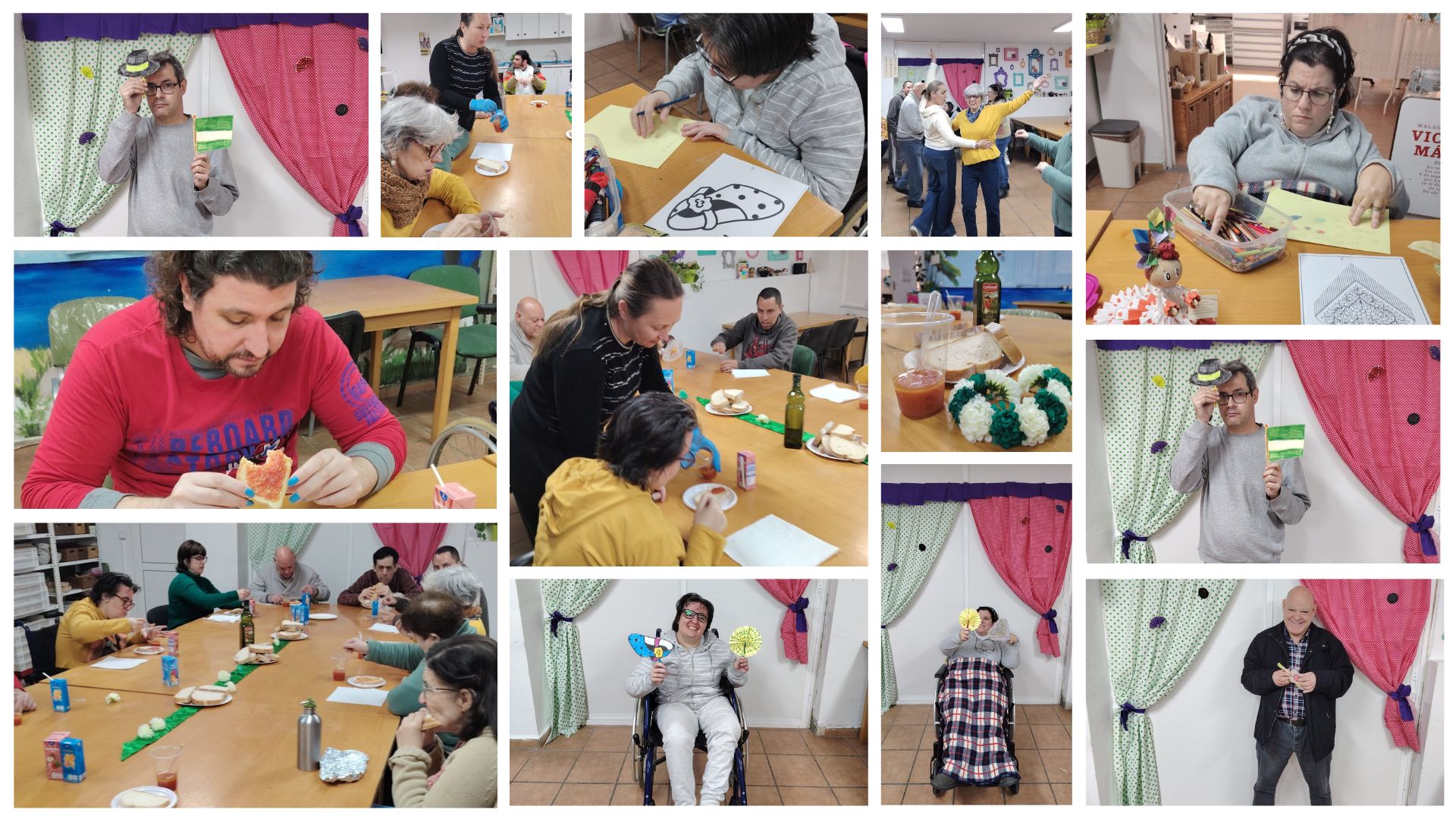 Coincidiendo con la Semana Blanca en la ciudad, durante los últimos días las personas participantes han desarrollado distintas actividades vinculadas a esta conmemoración tan señalada en la comunidad autónoma. Entre las propuestas, han elaborado banderas y sombreros andaluces que después lucieron en un divertido photocall preparado para la ocasión, llenando la jornada de color verde y blanco.