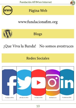 Fundación AFIM en Internet Página Web www.fundacionafim.org Blogs ¡Que Viva la Banda! No somos avestruces Redes Sociales FundacionAFim @FundacionAfim FundacionAfim afimfundacion Fundación AFIM 10