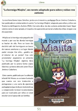 han publicado en colaboración el cuento “La hormiga Miajita”, adaptado para niños y niñas con